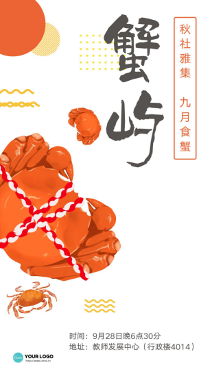 发送“9月28日蟹屿雅集报名+学院+姓名+联系电话”到邮箱460540233@qq.com,报名截止时间为9月27日18:00。