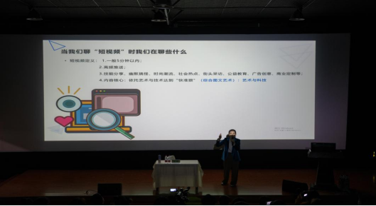 胡筱老师从四个方面给短视频进行了定义,一是短视频一般在5分钟以内;二是短视频需要高频推送;三是短视频的内容有技能分享、幽默搞怪、时尚潮流、社会热点、街头采访、公益教育、广告创意、商业定制等多种形式;四是短视频的内容核心是依托艺术和技术达到“快准狠”(综合图文艺术),这点在短视频当中是至关重要的。