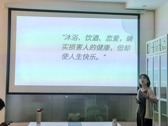 胡杨老师在末尾分享了一句话:“沐浴、饮酒、恋爱,确实损害人的健康,但却使人生快乐。”引得在座师生广泛讨论。大家就地域差异广泛地讨论起洗浴文化,阐述着各自的观点和发生的趣事,此次讲座也在融洽的讨论氛围中圆满结束。