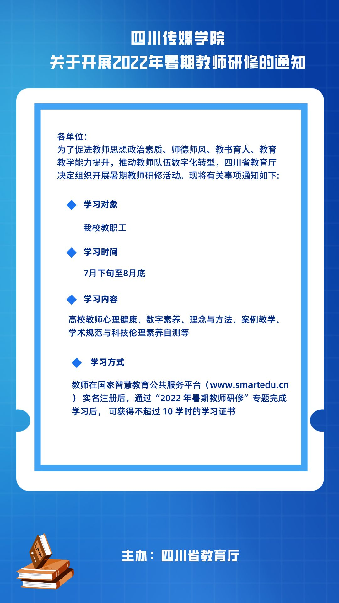 关于开展2022年暑期教师研修的通知