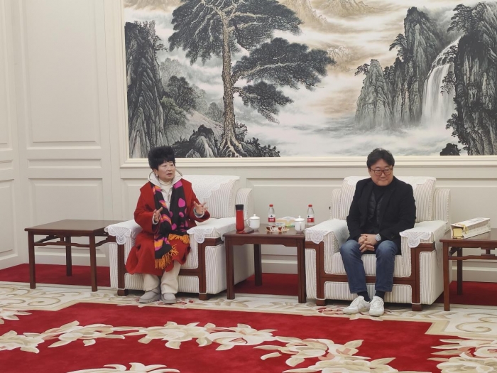 下午,四川传媒学院理事长张书玉教授亲切接待了鱼壹善教授。张书玉理事长首先向鱼壹善教授的来访表示热烈欢迎,并感谢他对四川传媒学院的关注与支持。作为两所高校、两个国家间学术交流与合作的倡导者,张理事长对鱼教授所做出的努力和工作成果表示支持和肯定。