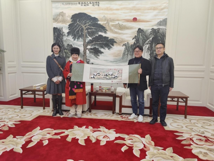 为向鱼教授展示四川的独特魅力,张书玉理事长还特意赠予鱼壹善教授四川特产蜀绣画卷。这幅精美的蜀绣画卷以其独特的技巧和传统的工艺,展现了四川深厚的文化底蕴和艺术魅力。鱼教授表示感谢,并表示将这份特别的礼物带回韩国,与他的同事和学生们一同欣赏、研究。