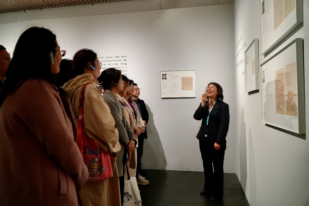 现场教学在清华大学艺术博物馆进行,清华大学艺术博物馆王斌斌老师为大家讲述了清华大学艺术博物馆的建筑风格、前身溯源,并对“尺素情怀”“丝绣华章”“随方制象”三个展馆进行了更为细致的解说,她表示博物馆不仅能够为参观者提供沉浸式的艺术体验,更能够对社会大众产生一定的美育教育功能,使大家通过各类展品理解传统与创新的融合与发展。