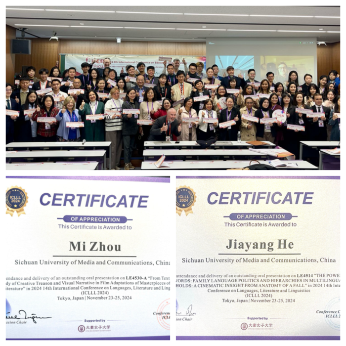 2024年11月23日至25日,四川传媒学院外国语部教师周蜜和数字媒体与创意设计学院教师沈子俊受邀前往日本东京参了第14届语言、文学和语言学国际会议( 2024ICLLL=International Conference on Language, Literature and Linguistics )。本次会议由日本大妻女子大学、东京医疗保健大学组织, 加拿大阿萨巴斯卡大学,日本山形大学联合主办。来自全球语言研究、数字媒体研究、跨文化研究及教学领域专家学者共百余人出席会议。