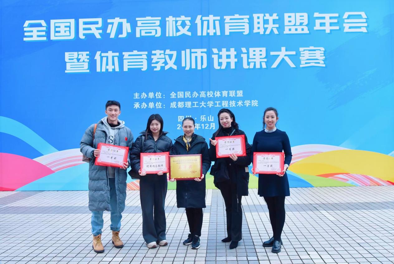 2024年12月13至15日,2024年全国民办高校体育联盟年会暨体育教师讲课大赛在成都理工大学工程技术学院举办。通过四川省比赛的选拔,选出我校三名教师在内的四川代表队参加全国总决赛。此次比赛吸引了56所民办高等院校、200余名人员参会,152名高校教师同场竞技。通过为期两天的教学展示和现场说课等环节的综合评比,角逐出了体育术科课组与体育理论课组一、二、三等奖。
