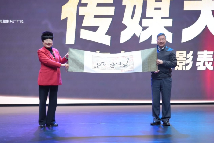 随后,四川传媒学院理事长张书玉教授发表讲话,她表示,四川传媒学院秉持开放合作、创新发展的理念,此次聘任厉震林教授正是践行“顶尖学者领航应用型人才培养”理念的生动实践。张书玉理事长指出,四川传媒学院将持续深化产教融合生态,培育既具有创新精神和国际视野,又适应传媒行业需求的高素质应用型人才。言毕,张书玉理事长郑重展开一幅非遗蜀绣卷轴,以巴蜀匠心之物凝结学术理想,在赠予厉震林教授的瞬间,完成了教育理念与文化符号的深度互文。