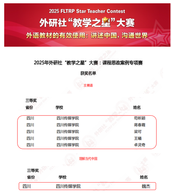 此次获奖标志着我校在外语课程思政建设探索中取得阶段性成果,也彰显了学校在价值引领、立德树人和教师队伍建设方面的不断提升。未来,学校将持续强化教师教学能力培养,深化课程思政建设与教学改革创新,充分发挥优秀教师的示范引领作用,为培养更多胸怀家国、视野开阔、专业过硬的高素质应用型传媒人才做出贡献。
