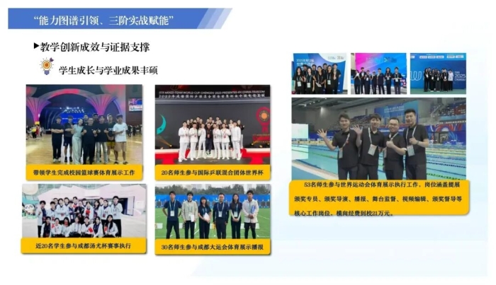 张尧团队以“能力图谱”为纲,构建 “校地协同、三阶递进” 的实战化教学模式,直接赋能地方体育产业。