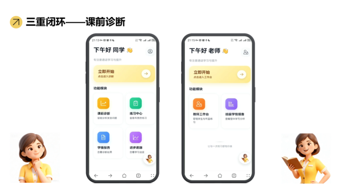 王晶团队针对《播音主持语音与发声》课程,引入AI数字人助教,构建 “课前诊断-课中靶向-课后验证”三重闭环,实现了从“单向传授”到“三元互动”的转变。