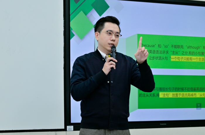申易平老师则从热点入手,带领学生发现普通话语音的旋律之美,解析双声、叠韵等语音现象。